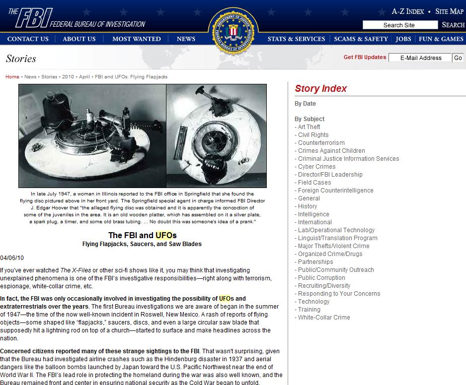 Bien. Al respecto estimado lector No dejaba de llamarnos la atención el porqué la cadena Fox News emitía una cápsula justamente hoy sobre un suceso que ocurrió, léalo bien, en Septiembre del 2009 y que dimos a conocer en EXCLUSIVA antes que nadie desde NPE (clic para ver), así mismo fué también en Abril del 2011 que nuevamente NPE comunicaba en también en EXCLUSIVA la publicación de The Vault, La Bóveda, nuevo sitio Web del FBI donde recordará Ud. se reacomodaron éstos mismos archivos pero se incluyeron algunos nuevos como el recordado GuyHottel, el mismo que hacía referencia a un estrellamiento de 3 OVNIs y recuperamiento de 9 cuerpos humanoides en Nuevo México en 1948 (clic para ver).
