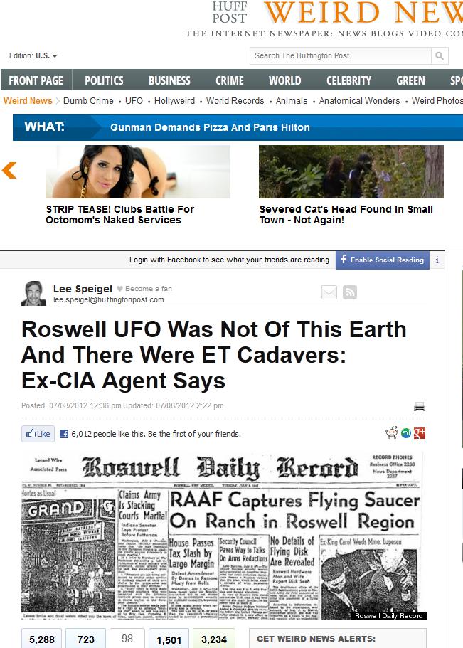 Recordemos que hace unos días el boom mediático por éste 65 aniversario fueron las declaraciones desde el Huffington Post de Chase Brandon, ex agente de la CIA que afirma hoy que el caso Roswell era extratererstre según el acceso que tuvo el mismo a una "caja con documentos secretos" (clic para ver).